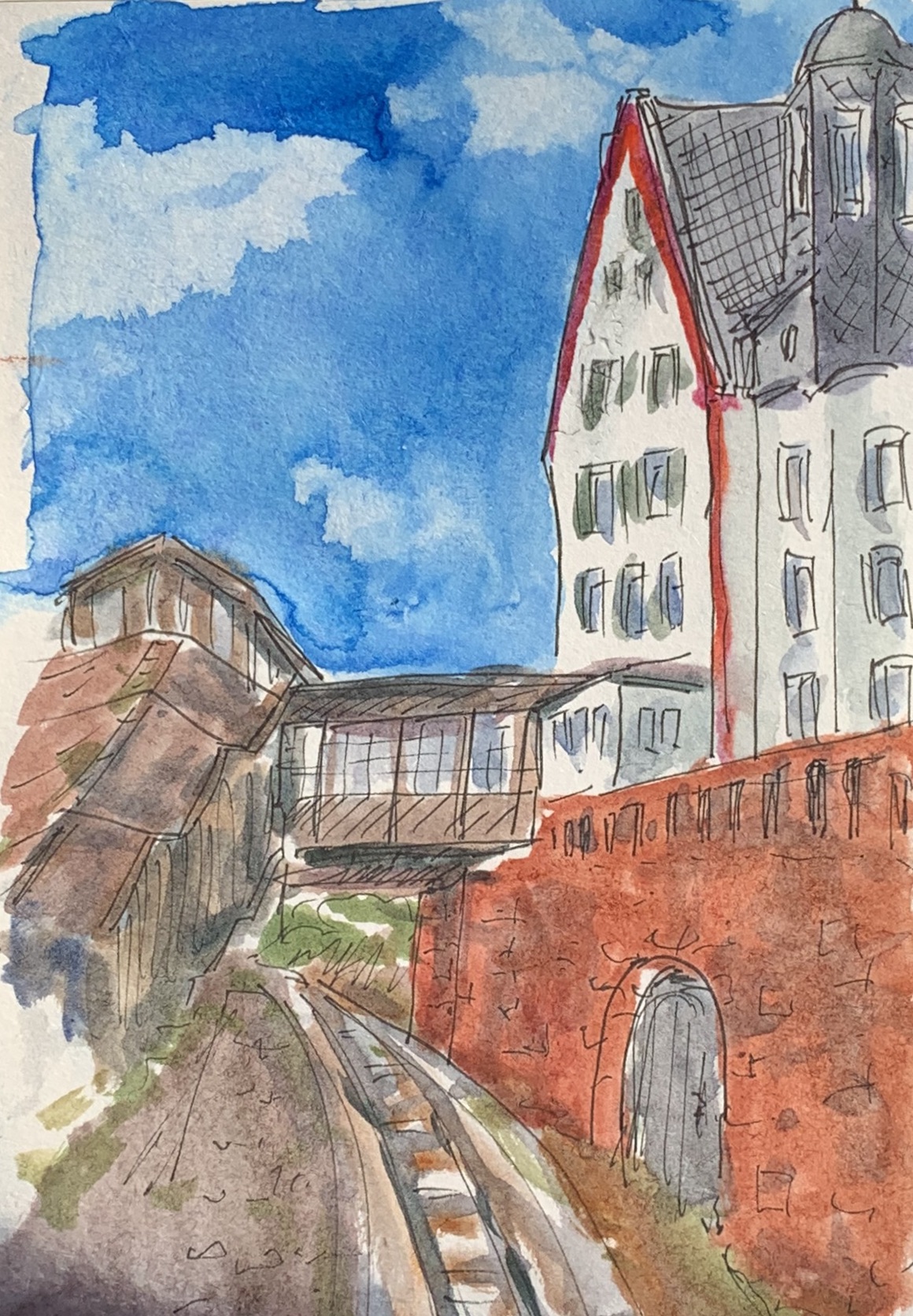 Heute male ich beim Warten auf die S-Bahn (die Farbe füge ich in während der Fahrt hinzu).